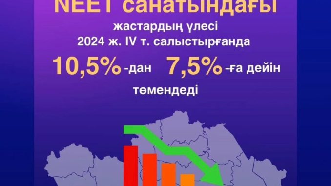 Орталықтың жүйелі жұмысы мен серіктестік аясында өткізілген іс-шаралардың нәтижесінде 2025 жылдың үшінші тоқсанында Жетісу облысында NEET-жастар үлесі 7,5 %-ға дейін төмендеп, олардың саны 7 219 адамнан 3 939 адамға дейін қысқарды.