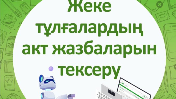 1. Порталдың басты бетіндегі сол жақ бағаннан «Жеке тұлғалардың акт жазбаларын тексеру қызметін» табыңыз