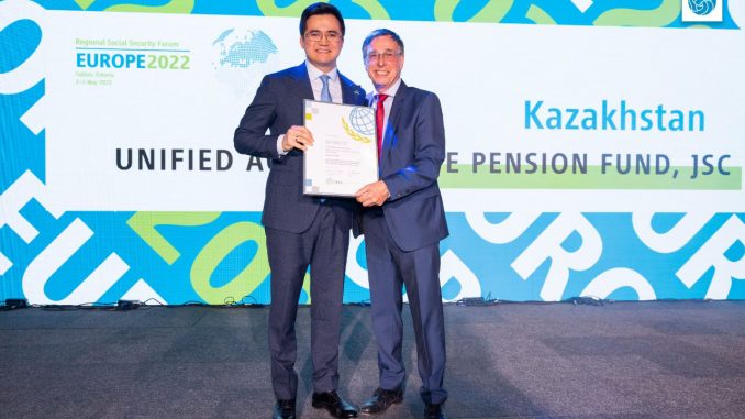 енгізу және халықтың қаржылық сауаттылығын арттыру есебінен жинақтаушы зейнетақы жүйесіндегі жетістіктері үшін ерекше үздік грамота алды. БЖЗҚ өкілдері марапаттау рәсіміне онлайн форматта қатысып, марапат Эстония Республикасындағы Қазақстан Республикасы Елшілігінің өкілі Мейрам Мұташевке табысталды.